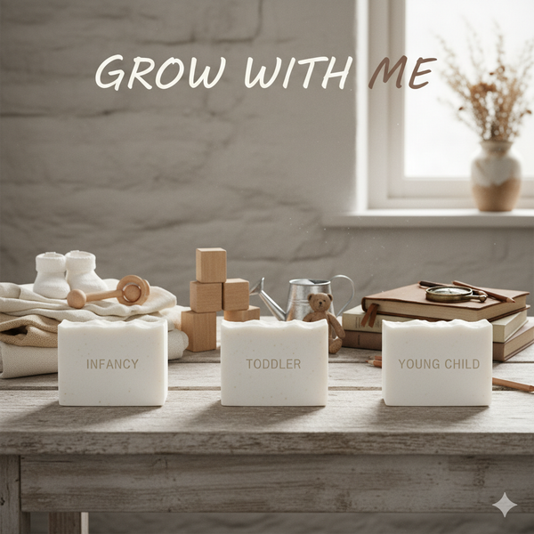 Gentle cleansing for every stage of growth. From their very first bath to their adventurous play-filled days, a child's skin needs the purest, most gentle care. Our "Grow With Me" Collection is thoughtfully crafted to support their delicate skin at every precious stage—from infancy through their active young years.